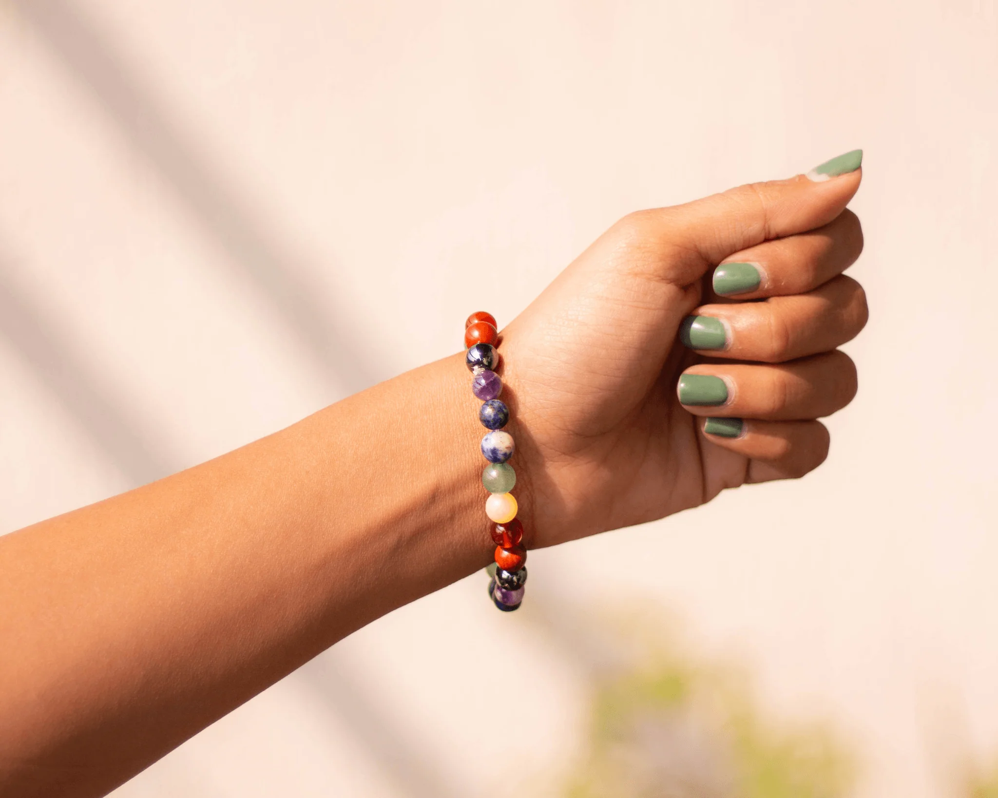 Each bead in this bracelet represents one of the seven chakras, using natural healing crystals carefully selected to match each energy center in your body.